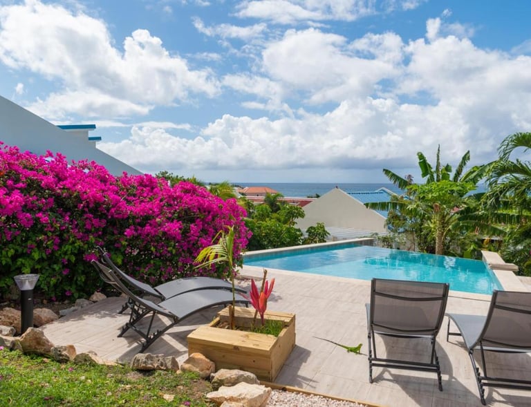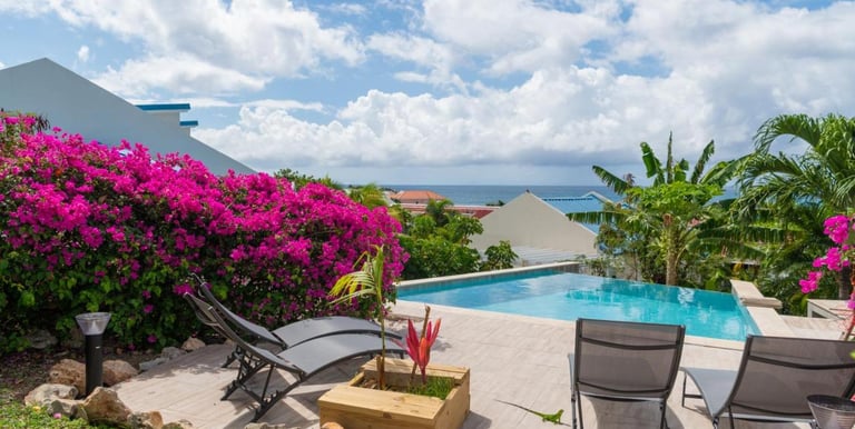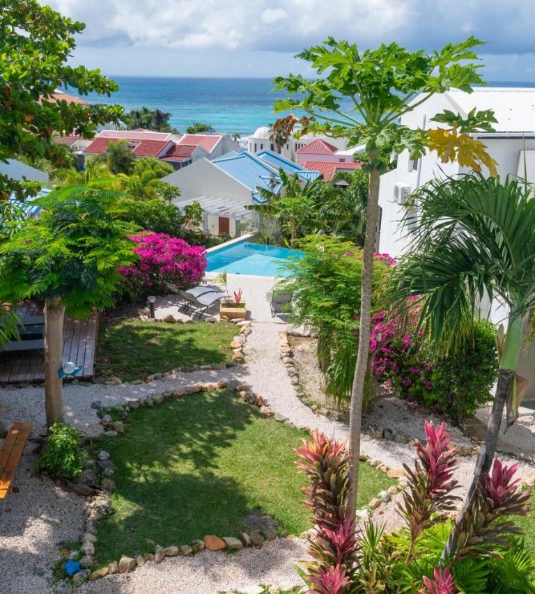 Relax in the heart of Saint Maarten with sea views and tropical gardens.